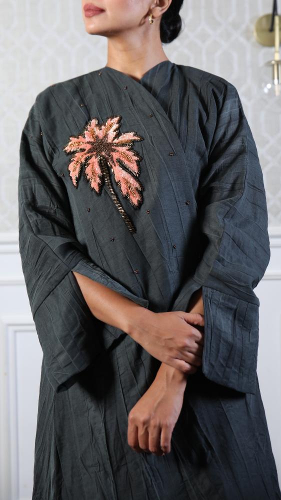 • نوع القماش: كتان مكرمش فاخر مناسبة للأجواء الصيفية مطرزه بالخرز على الصدر